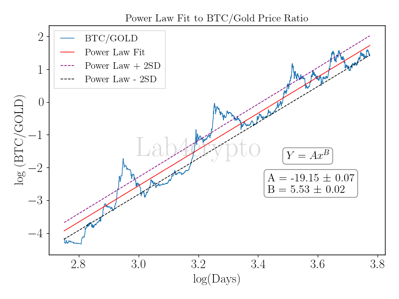 Now, let’s talk gold. For 15 years, the Bitcoin/Gold pair has followed a power-law growth pattern (from log space to linear), oscillating within two standard deviations. Currently, Bitcoin is at the -2 standard deviation mark (black line), suggesting it’s poised to outperform gold in the coming months. This isn’t surprising—gold often leads during uncertainty (like China’s tariff-driven gold rush), but Bitcoin tends to catch up. With gold hitting all-time highs, Bitcoin’s relative undervaluation is a compelling opportunity.